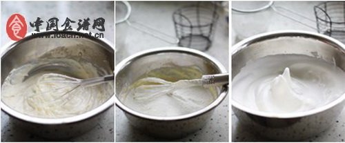 檸檬汁,分2次加入細(xì)砂糖打至干性發(fā)泡