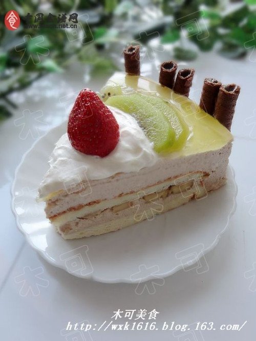 戚風(fēng)蛋糕,然后做慕斯餡、接著組合戚風(fēng)蛋糕和慕斯餡、最后再進(jìn)行蛋糕表面裝飾。無論是做