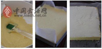 9、將蛋糕糊倒入鋪了油紙的烤盤中。