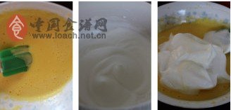 7、將剩余的蛋白與蛋黃糊切拌均勻。