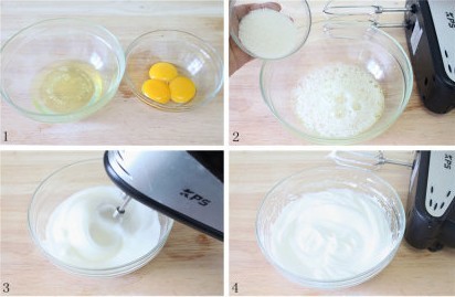 5.打至蛋黃變得濃稠,顏色變淺,體積膨大。