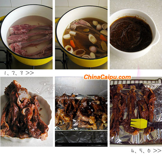 1:羊排放在冷水鍋中燒開(kāi),去除