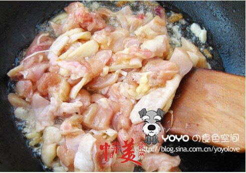 雞肉翻炒2分鐘;