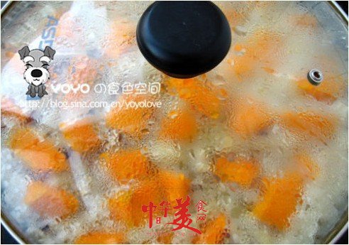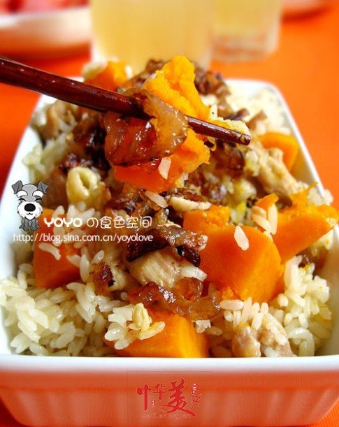米飯即可,碼上南瓜塊,大火煮沸轉(zhuǎn)文火燜到熟;