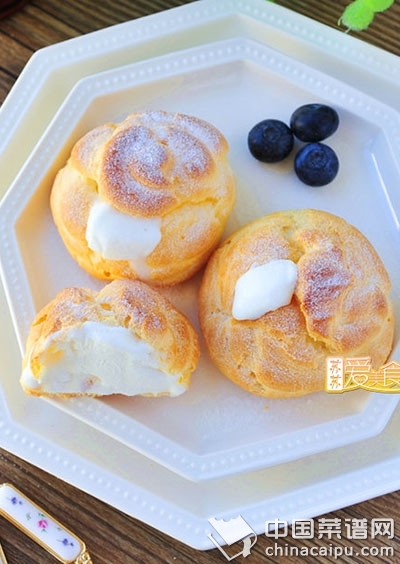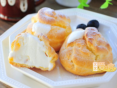10、取出放涼不燙手,用長(zhǎng)形花嘴注入冰淇淋即可。