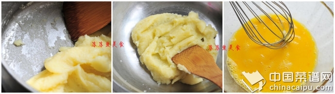 3、再開小火,讓面團(tuán)水分再收干,至鍋底有一層黏膜后離火。