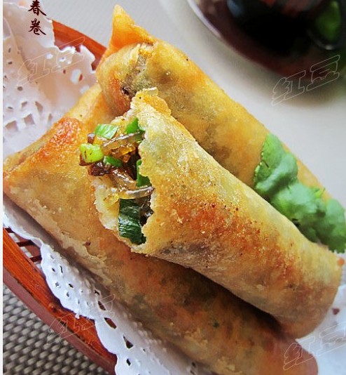 10. 鍋中油燒熱放入春卷炸制金黃焦酥即好。