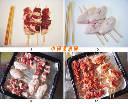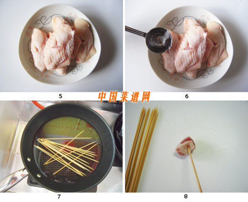 8.羊肉和雞翅腌好以后,開(kāi)始穿