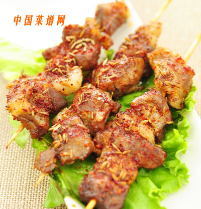 羊肉串。按圖中所示的,從肥肉的底部開(kāi)始向