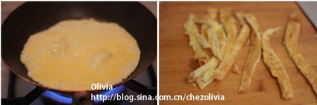 蛋餅,切成絲,放在盤子里備用