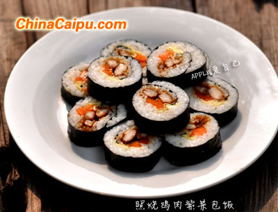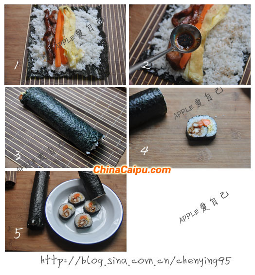 1、紫菜上鋪米飯的時候四周盡量空出一圈來,這樣卷起接口處不會米飯鼓出來