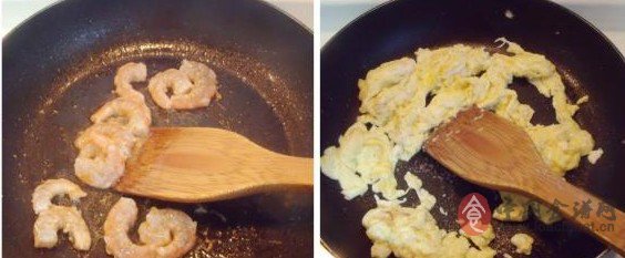 3、 鍋燒熱加油,將蝦仁倒入翻炒至表面變色后撈出。