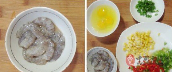 蝦仁,加料酒,鹽,胡椒粉,少許淀粉拌勻腌制。
