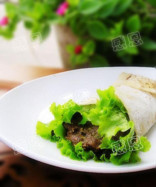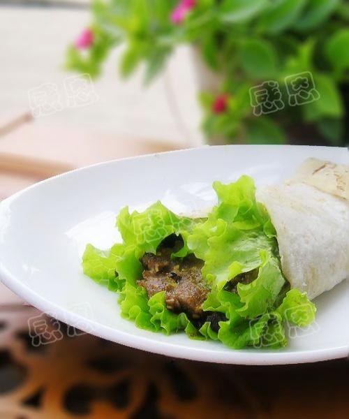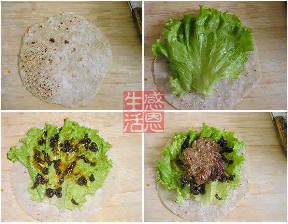 7.在生菜葉上抹上自己喜歡的醬,我用的是