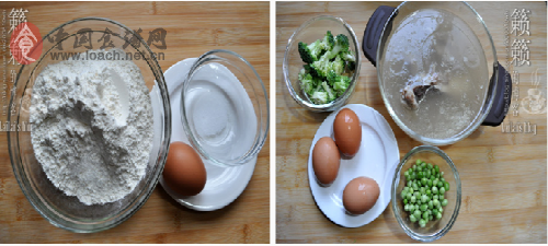 湯面配料:肉骨湯1小鍋、雞蛋3個、西蘭花1小碗、青豆適量。