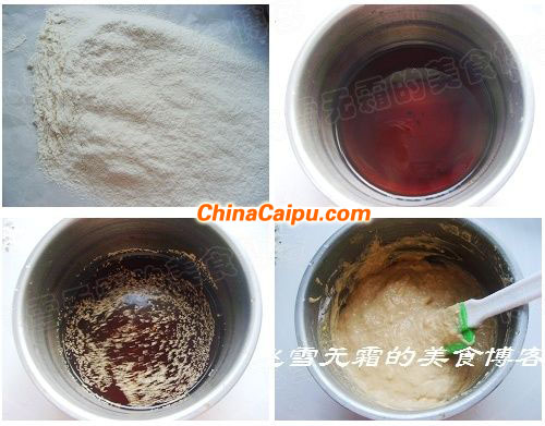 6、然后倒入紅糖面糊