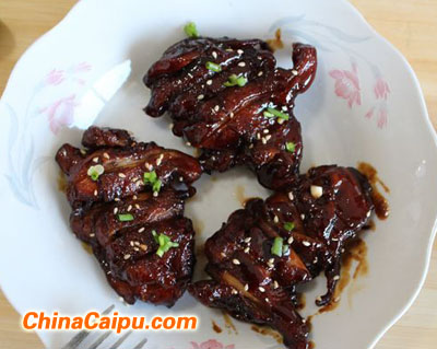 原料:雞腿3只,生抽2勺,老抽1勺,料酒2勺,蜂蜜2勺,白糖1勺,油,芝麻,蔥花