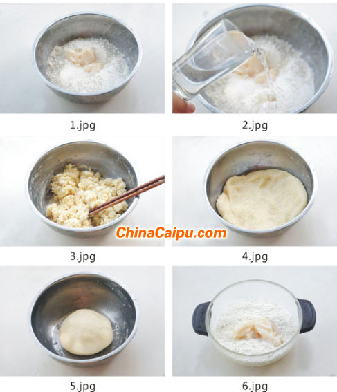 5、散掉面團熱氣后揉成團。
