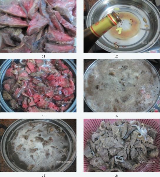3、第三步中豬肺要冷水下鍋,慢慢隨著水溫的升高將豬肺里剩余的臟東西煮出,開鍋后煮一會(huì)兒就可以馬上過清水撈出了,這樣才能保證豬肺的口感。加入花椒生姜料酒可以去腥。