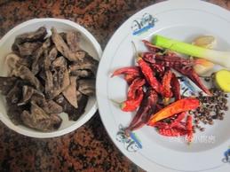 原料:處理好的豬肺適量、小的干辣椒、大的干辣椒、青蒜段、生姜、花椒