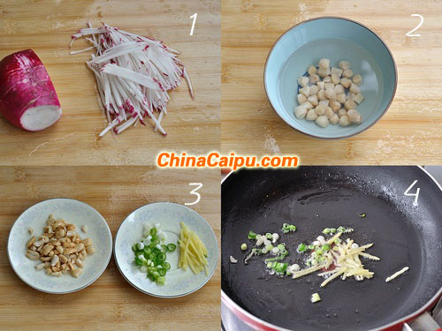 4、鍋里放少許油,熱后放入姜絲,蔥花爆香。