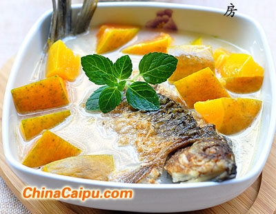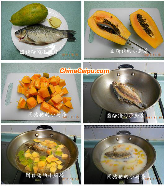 4.木瓜會使湯的味道變甜,所以不注意木瓜和魚的比例,如果個(gè)頭太大,一次只用半顆就夠了。不要加太多鹽,鹽多傷
