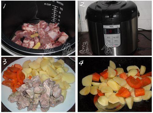 血水,中間換水2~3次,然后把排骨放進(jìn)電壓力鍋,加入幾塊