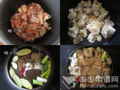 4. 加入焯水之后的牛腩塊,加水至沒過所有材料