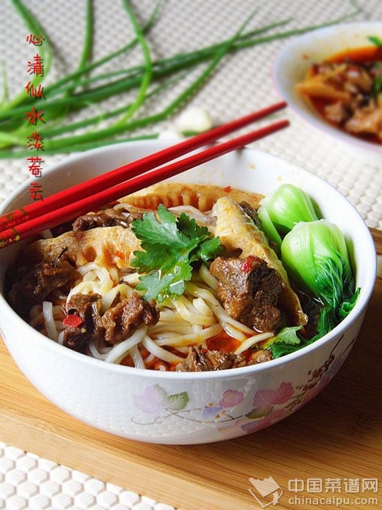 15.將煮好的面上挑入碗里,放上油菜,大大的牛肉塊,一碗香辣的牛肉面就好了