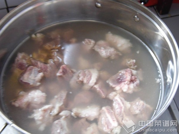 2.水沸騰后在放入牛肉過水焯一下,撈出用溫水洗去浮沫