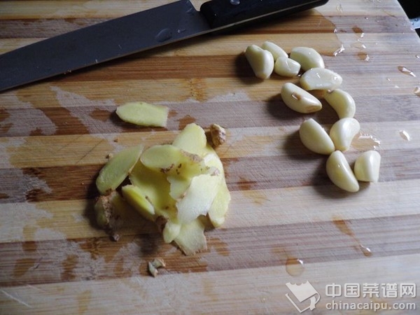 3.生姜一塊切成大片,大蒜2頭剝皮備用