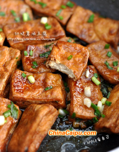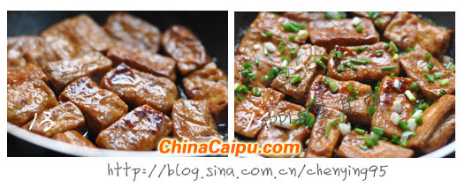 2、豆腐一定要煎到兩面焦黃,這樣再加料煮,飽含湯汁。。。外焦里嫩。