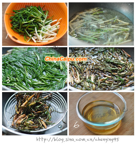 蔥油1、蔥洗凈,切段,蔥白蔥綠注意分開