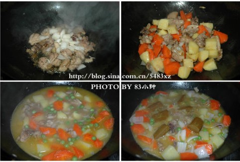 4.倒入胡蘿卜,土豆翻炒。