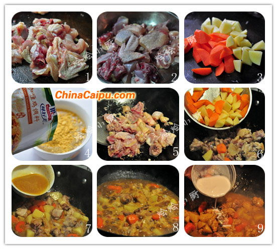 咖喱雞調(diào)料1包,食鹽1/4小匙;
