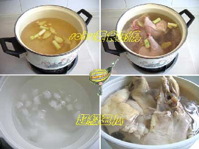 ??? 煮好的雞要立刻放到涼開水里,最好是冰開水里激一下。這樣皮質細膩緊滑,脆脆的不容易散爛。