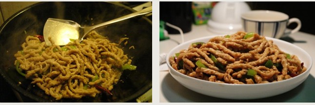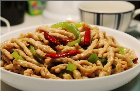 1.肉絲炒的時候要用大火,并且要翻炒均勻,因為面筋絲一多不容易斷生。