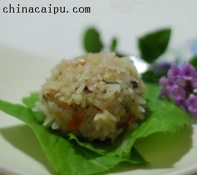 荷葉或者粽葉墊在下面,可以防止粘碗底,蒸出來也會(huì)帶一種清香