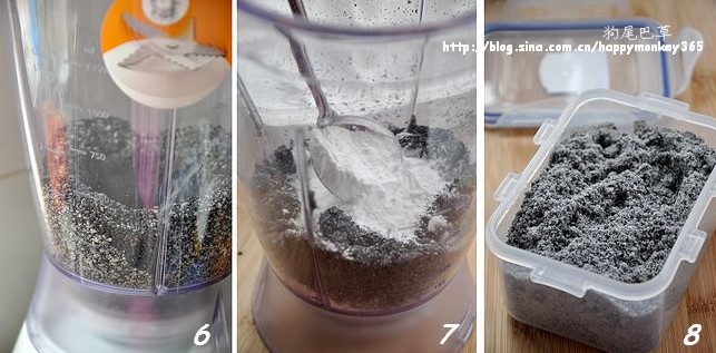 6.7.8. 晾涼的黑芝麻用攪拌機(jī)打成粉,再加入適量
