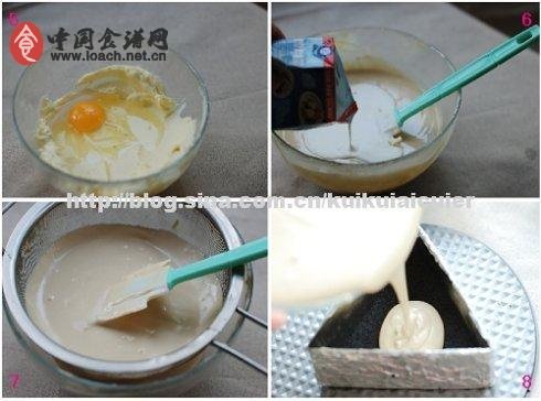 6.將混合好的芝士液再過一遍篩,芝士糊就完全無顆粒了。
