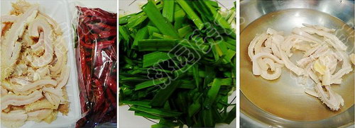 3、韭菜摘凈清洗干凈后,控水、切段備用;大蒜切片備用;