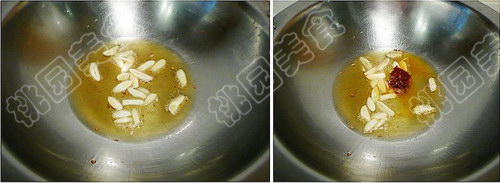 4、凈鍋入油,涼油下入花生米,炒酥取出;