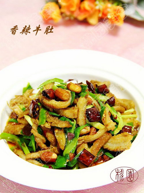 1、熟牛肚絲清洗后,用加了姜和料酒的水煮5分鐘,去掉異味,撈出后用涼水泡上備用;