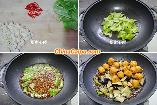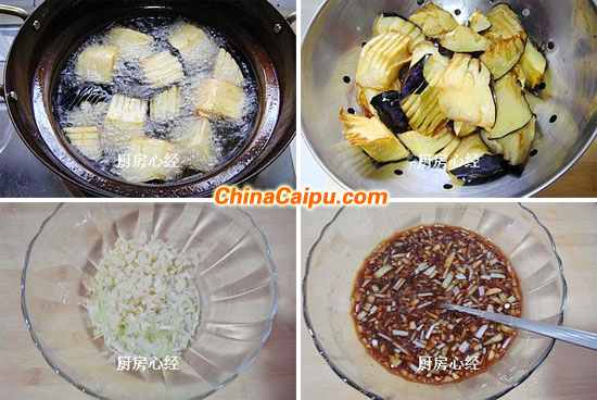 5.茄子要立即下油鍋,8成熱時(shí),茄子基本不吸油