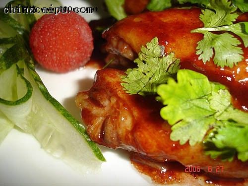 用料:雞翅。把大小臂分?jǐn)亻_。 蔥、姜、蒜切大塊,大段。糖、料酒。腐乳汁。