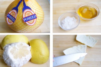 1、先將柚子清洗一下,用食鹽搓一搓表皮,再放進60度左右的水中泡10分鐘,這樣可以去掉柚子表皮的蠟質