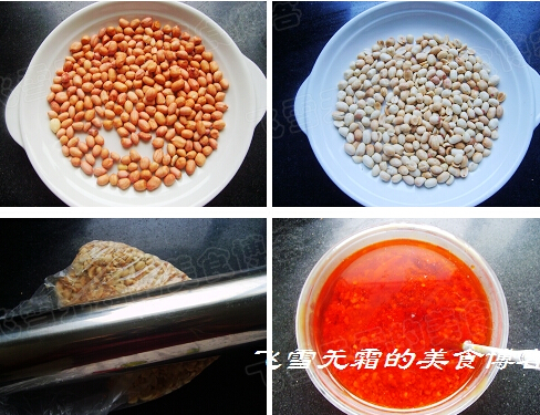 原料蒜蓉香辣醬50克,花生米100克,豆豉30克,芝麻30克