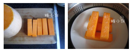 我試過(guò)用那種很面很甜的老南瓜~太易碎~容易蒸爛不形