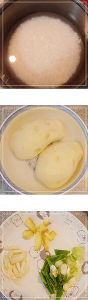 醬香土豆燜飯的材料:米1杯,土豆2個(gè),大蔥,姜,蒜,小蔥,香菜美食網(wǎng)