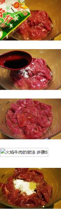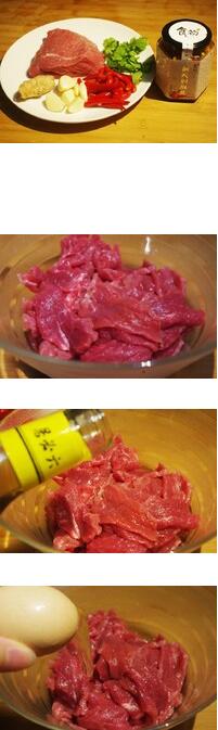 火焰牛肉的材料:牛肉250克,姜蒜,香菜,蘇打粉半勺,料酒6勺,蛋清1個,淀粉2勺,胡椒半勺,生抽1勺,鹽,小米辣,剁椒,美食網(wǎng)